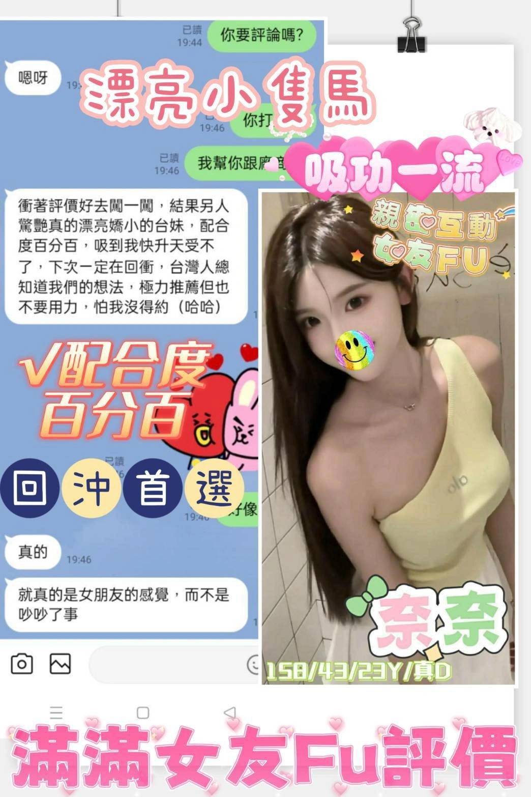 ❤️可配合 : 毒龍,按摩,共浴,LG(舌吻)依氣氛衛生而定,可親嘴,無套吹,口爆,舔蛋,深喉嚨,變裝(自備免付),絲襪