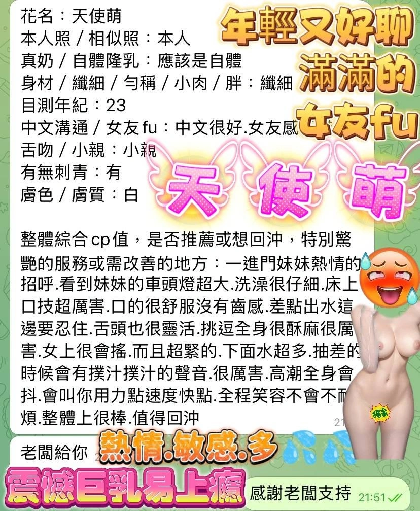 ❤️可配合 : 奶砲,69,殘廢澡,LG(舌吻)依氣氛衛生而定,可親嘴,無套吹,口爆,舔蛋,漫遊,奶推,冰火,深喉嚨,絲襪(自備免付),自慰秀,中文溝通,快餐,2S