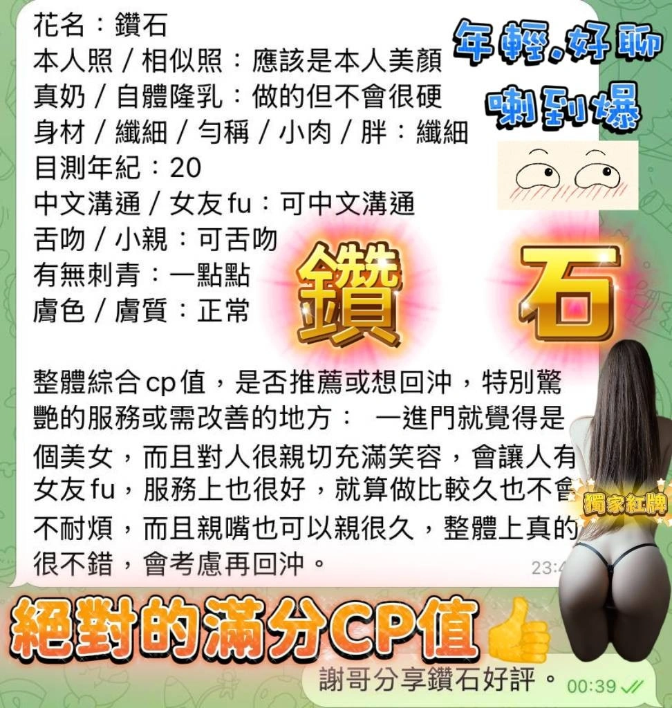 ❤️可配合 : 奶砲,69,殘廢澡,LG(舌吻)依氣氛衛生而定,可親嘴,無套吹,口爆,舔蛋,漫遊,奶推,冰火,深喉嚨,絲襪(自備免付),白人,快餐,2S,包夜,射後清槍
