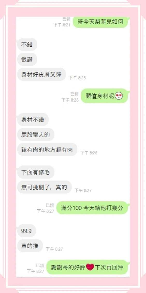 ❤️可配合 : 奶砲,毒龍,按摩,69,共浴,殘廢澡,LG(舌吻)依氣氛衛生而定,可親嘴,無套吹,口爆,品鮑,舔蛋,輕功,顏射,無套做,無套內射,攝影,快餐,2S,包夜
