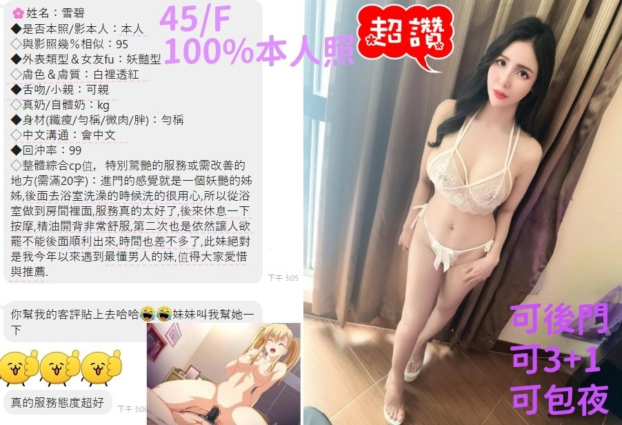 ❤️可配合 : 奶砲,按摩,桑拿,69,陪洗,共浴,殘廢澡,LG(舌吻)依氣氛衛生而定,可親嘴,無套吹,口爆,吞精,潮吹(依貴賓技術而定),品鮑,舔蛋,漫遊,奶推,顏射,深喉嚨,變裝(自備免付),絲襪(自備免付),玩具(跳蛋),後門,自慰秀,快餐,2S,包夜