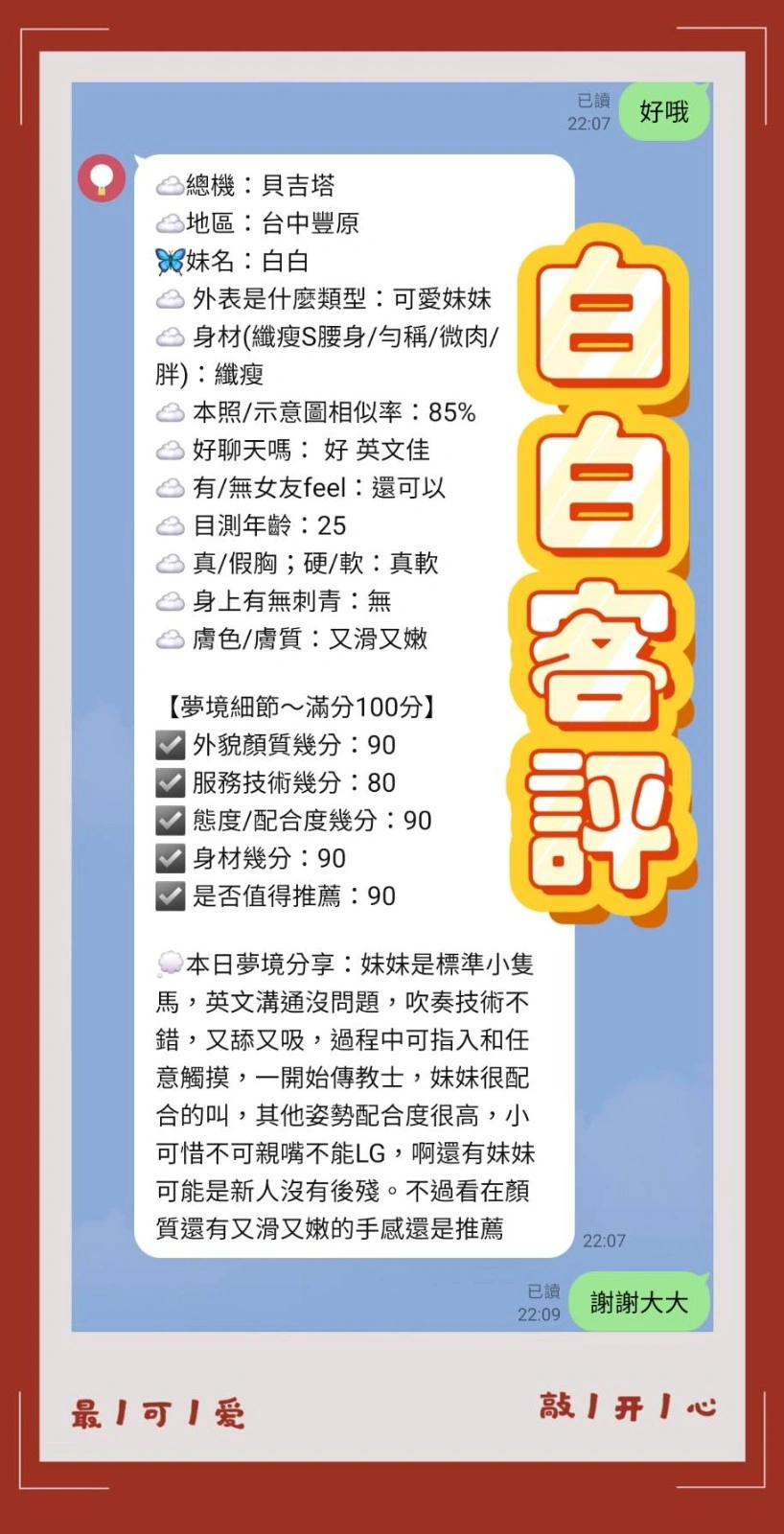 ❤️可配合 : 奶砲,按摩,共浴,LG(舌吻)依氣氛衛生而定,可親嘴,無套吹,舔蛋,奶推,屁推,顏射,浴中蕭,快餐,2S