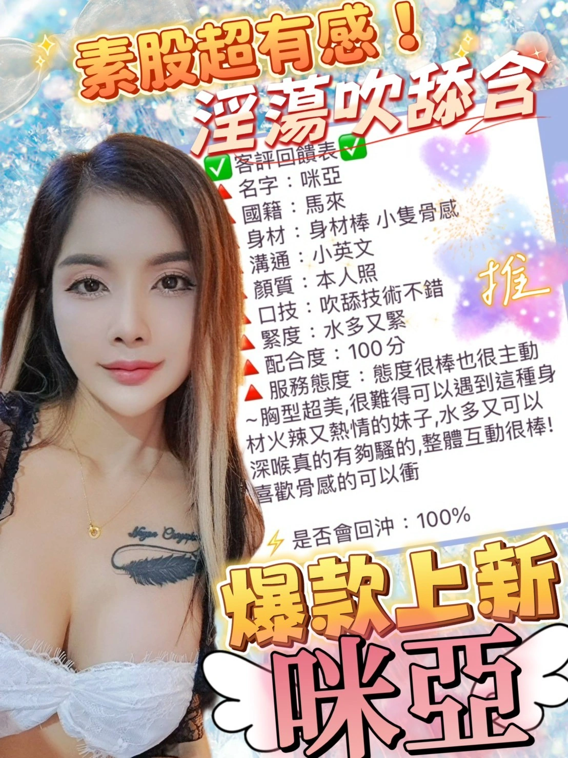 ❤️可配合 : 奶砲,69,共浴,LG(舌吻)依氣氛衛生而定,可親嘴,無套吹,舔蛋,顏射,艷舞秀,無套做,無套內射,自慰秀,英文溝通,快餐,2S,包夜