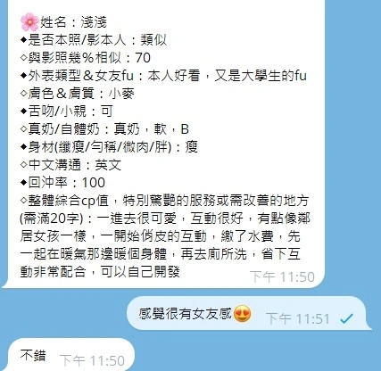 ❤️可配合 : 奶砲,按摩,69,共浴,LG(舌吻)依氣氛衛生而定,可親嘴,無套吹,口爆,品鮑,奶推,絲襪(自備免付),無套做,無套內射,攝影,快餐,2S,包夜