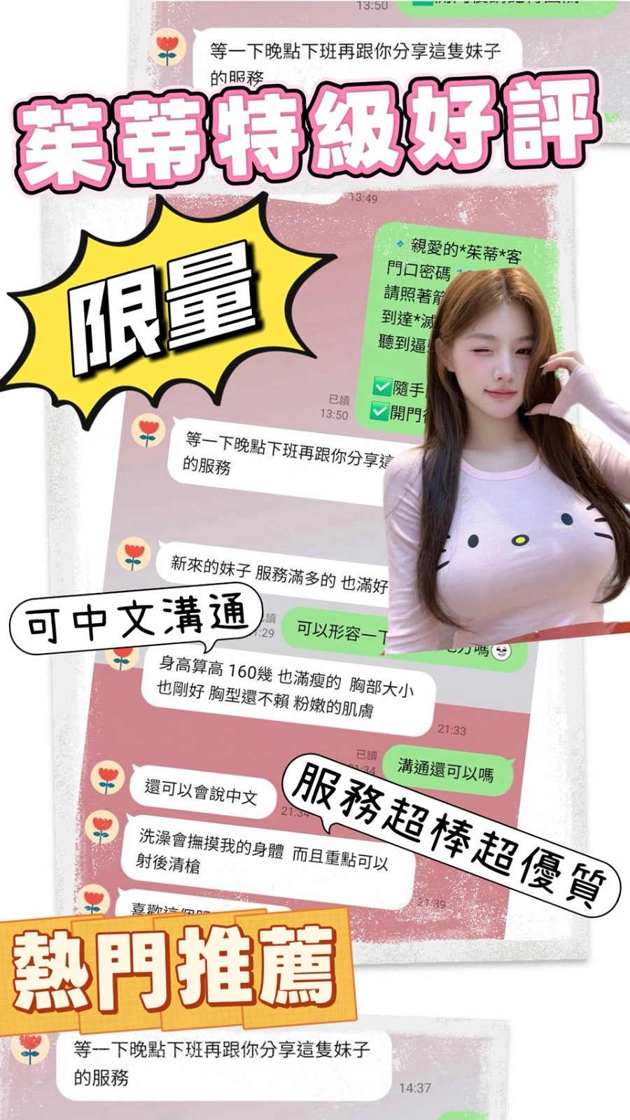 ❤️可配合 : 奶砲,按摩,69,共浴,殘廢澡,可親嘴,無套吹,口爆,吞精,足交,品鮑,舔蛋,顏射,浴中蕭,深喉嚨,變裝(自備免付),絲襪(自備免付),快餐,2S,包夜