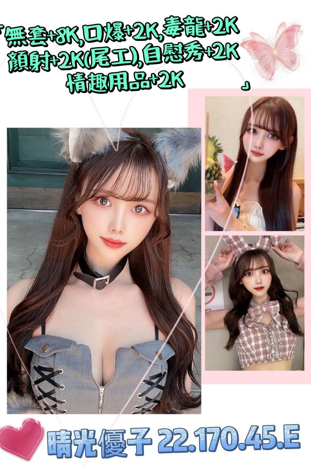 無套外射+8000,口爆+2000,毒龍+2000,自慰秀+2000,顏射+2000,情趣用品+2000(客自備),車資依地區計價