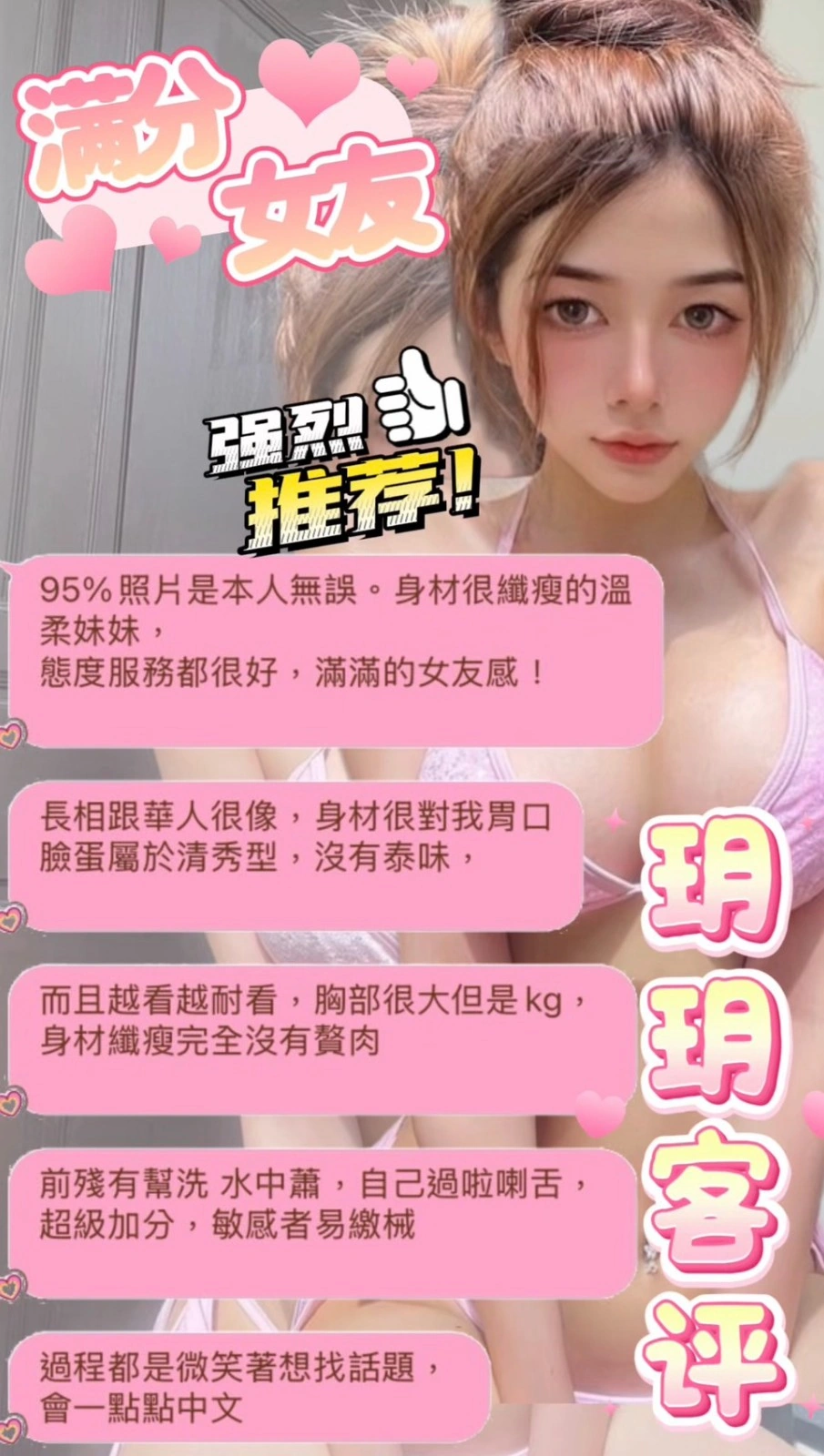 ❤️可配合 : 奶砲,按摩,69,共浴,LG(舌吻)依氣氛衛生而定,可親嘴,無套吹,品鮑,舔蛋,奶推,屁推,浴中蕭,變裝(自備免付),絲襪(自備免付),玩具(按摩棒),玩具(跳蛋),情趣用品(客自備),無套做,無套內射,快餐,2S