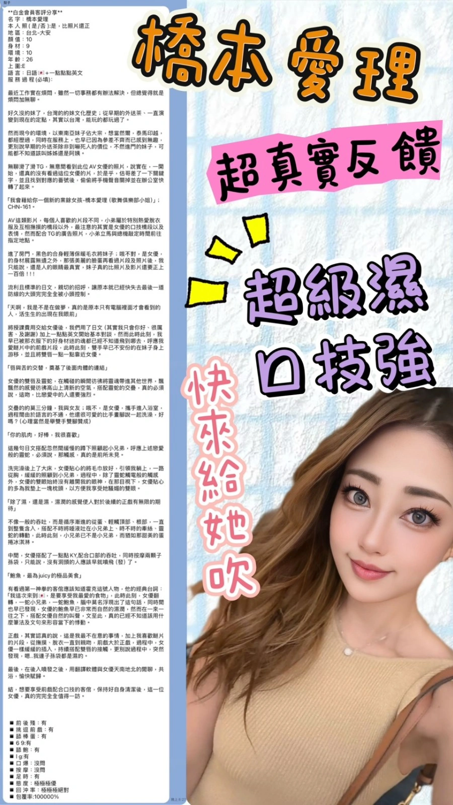 ❤️可配合 : 按摩,69,共浴,LG(舌吻)依氣氛衛生而定,可親嘴,無套吹,口爆,品鮑,變裝,絲襪,無套做,無套內射,自慰秀,攝影,2S,包夜