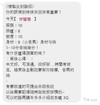 ❤️可配合 : 奶砲,按摩,69,共浴,LG(舌吻)依氣氛衛生而定,可親嘴,無套吹,品鮑,舔蛋,絲襪,中文溝通,快餐,2S